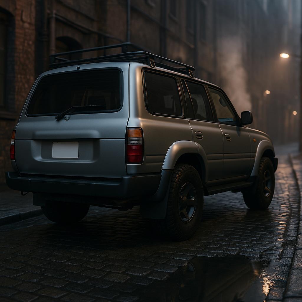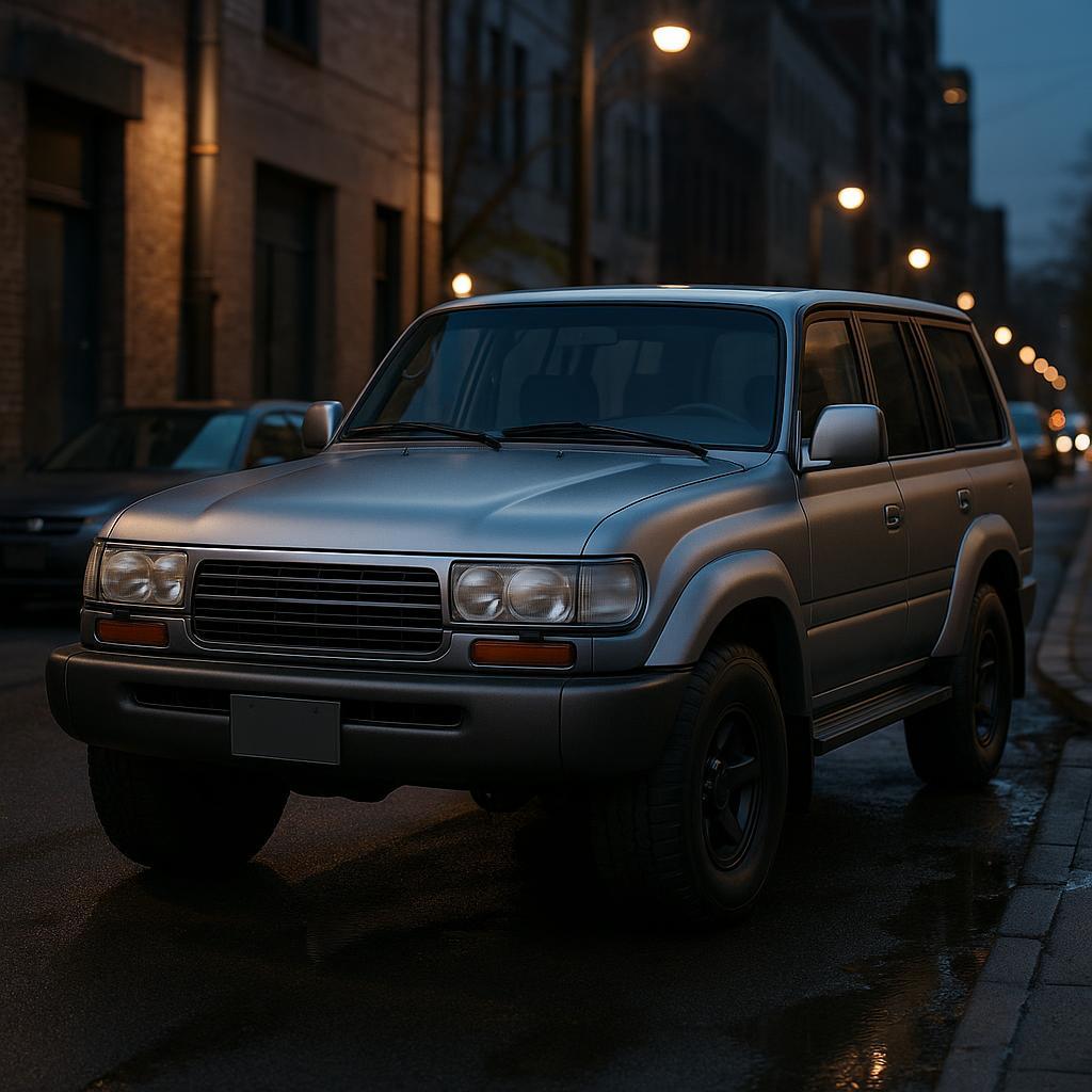 On vehicle surfaces, dominant color is a cool, medium silver with subtle blue undertones. Finish is matte with a smooth, metallic sheen, lacking gloss or high shine.