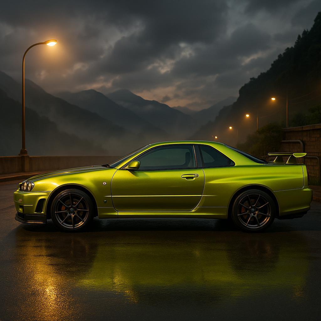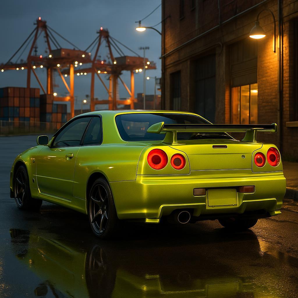 Dominant color: bright yellow-green with subtle golden undertones. In direct and diffused lighting, reflectivity behavior: strong mirror-like reflectivity under hard light; diffused highlights under soft light. Texture/pattern details and scale: uniform, fine texture with no visible pattern or grain.
