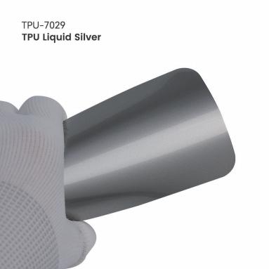 Liquid Silver (TPU-7029) brings a high-end TPU aesthetic tailored for modern vehicle styling projects. In practical use, finish is smooth and metallic with a satin-to-gloss sheen.